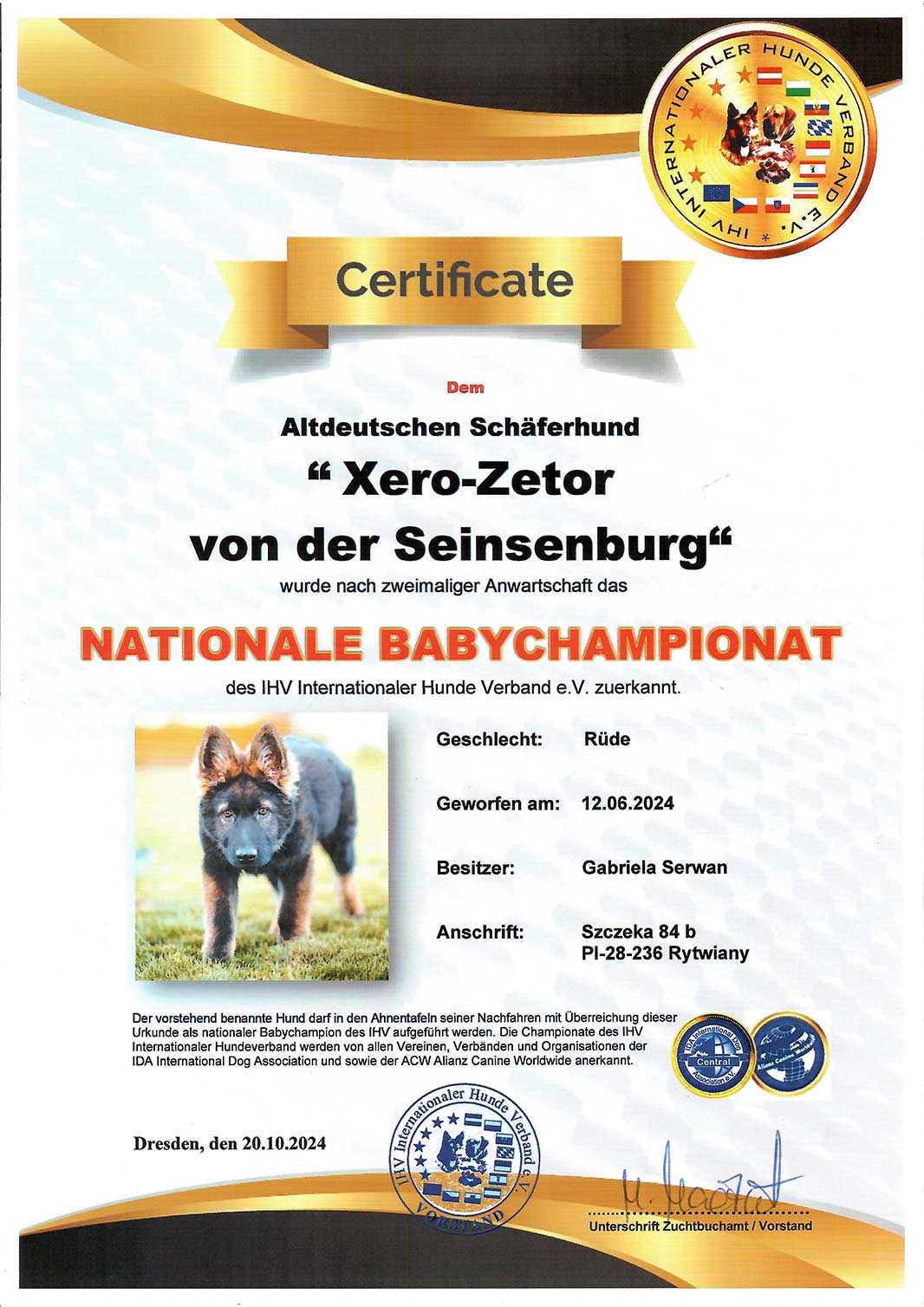 Zetor to psiak który przybył do nas z Austrii, z renomowanej hodowli owczarków staroniemieckich z lini wschodniej. Bardzo długo czekałam na samca, który nie byłby spokrewniony z moimi dziewczynami, a przy tym prowadziłby w wysokim stopniu linie DDR.